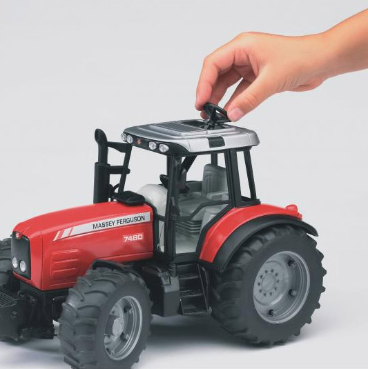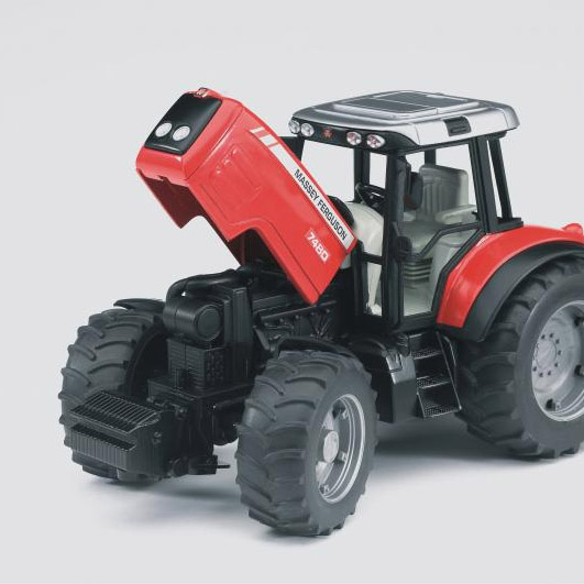 Ciągnik posiada skręcane przednie koła za pomocą dołaczonej mini kierownicy wkładanej przez zamykany otwór w dachu. Maskę od silnika można podnosić, a przednie obciążniki demontować. Pojazd wyposażony jest w miękkie gumowe opony z bieżnikiem i niezależne zawieszenie przedniej osi typu off-road. Z przodu ciągnika można zamontować ładowarkę czołową (do kupienia osobno model nr 02317) lub lemiesz do spychania (model nr 02582 lub 02581). Ciągnik można wyposażyć także w dodatkowe koła bliźniacze (model nr 02316) lub w wiele innych dołączanych akcesoriów i przyczep.