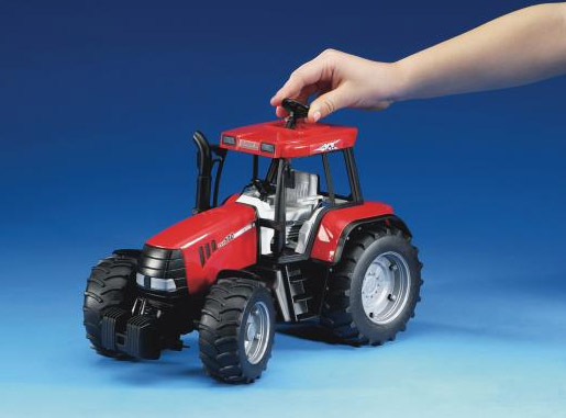 Ciągnik posiada skręcane przednie koła za pomocą dołaczonej mini kierownicy wkładanej przez zamykany otwór w dachu. Maskę od silnika można podnosić, a przednie obciążniki demontować. Pojazd wyposażony jest w miękkie gumowe opony z bieżnikiem i niezależne zawieszenie przedniej osi typu off-road. Z przodu ciągnika można zamontować ładowarkę czołową (do kupienia osobno model nr 02317) lub lemiesz do spychania (model nr 02582 lub 02581). Ciągnik można wyposażyć także w dodatkowe koła bliźniacze (model nr 02316) lub w wiele innych dołączanych akcesoriów i przyczep.