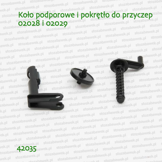 Część zamienna - koło podporowe i pokrętło do przyczepy do przewozu koni 43028 (02028) wraz z zestawami 02501, 02592 oraz do przyczepy-lawety z zestawu 02504 (RAM z lawetą i roadsterem) i 02546 (RAM z lawetą i koparką).