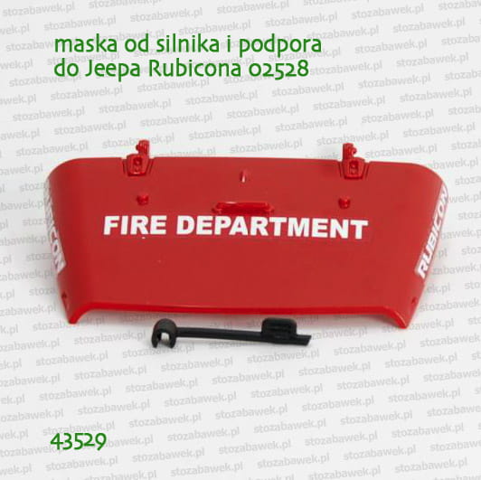 Część zamienna - maska od silnika i podpora podpierająca maskę do samochodu Jeep Rubicon straż pożarna w kolorze czerwonym (model nr 02528).